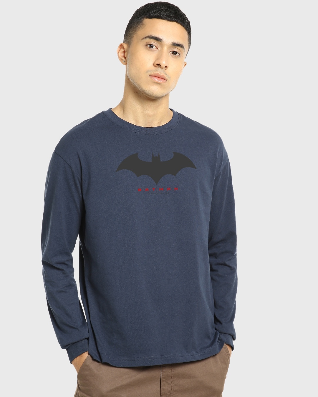 Men's Blue Batman Graphic Printed Oversized T-shirt