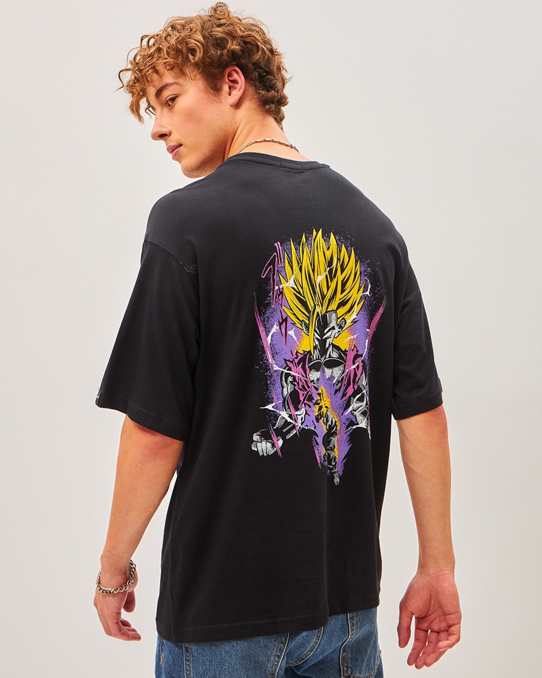 Men's Black Gohan Graphic Printed Oversized T-shirt