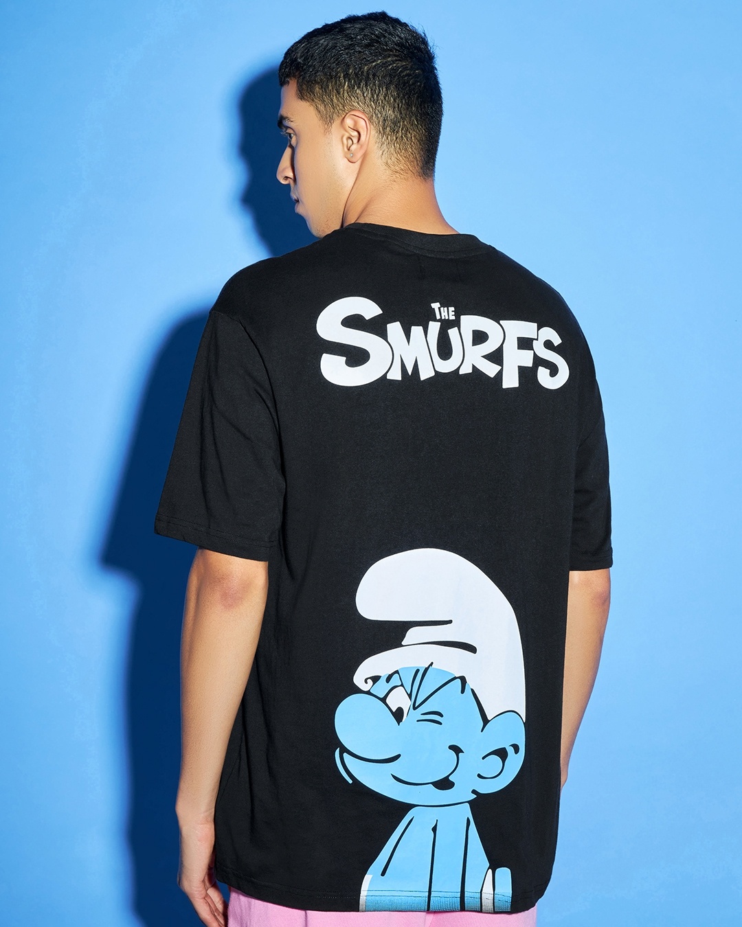 Men's Black Smurf Super Graphic Printed Super Loose T-shirt