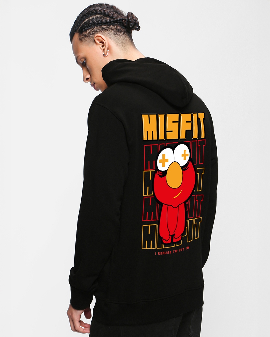 Men's Black Misfit Graphic Printed Oversized Hoodies