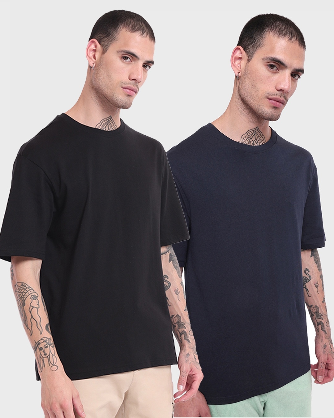 Pack of 2 Men's Black & Navy Blue Oversized T-shirt