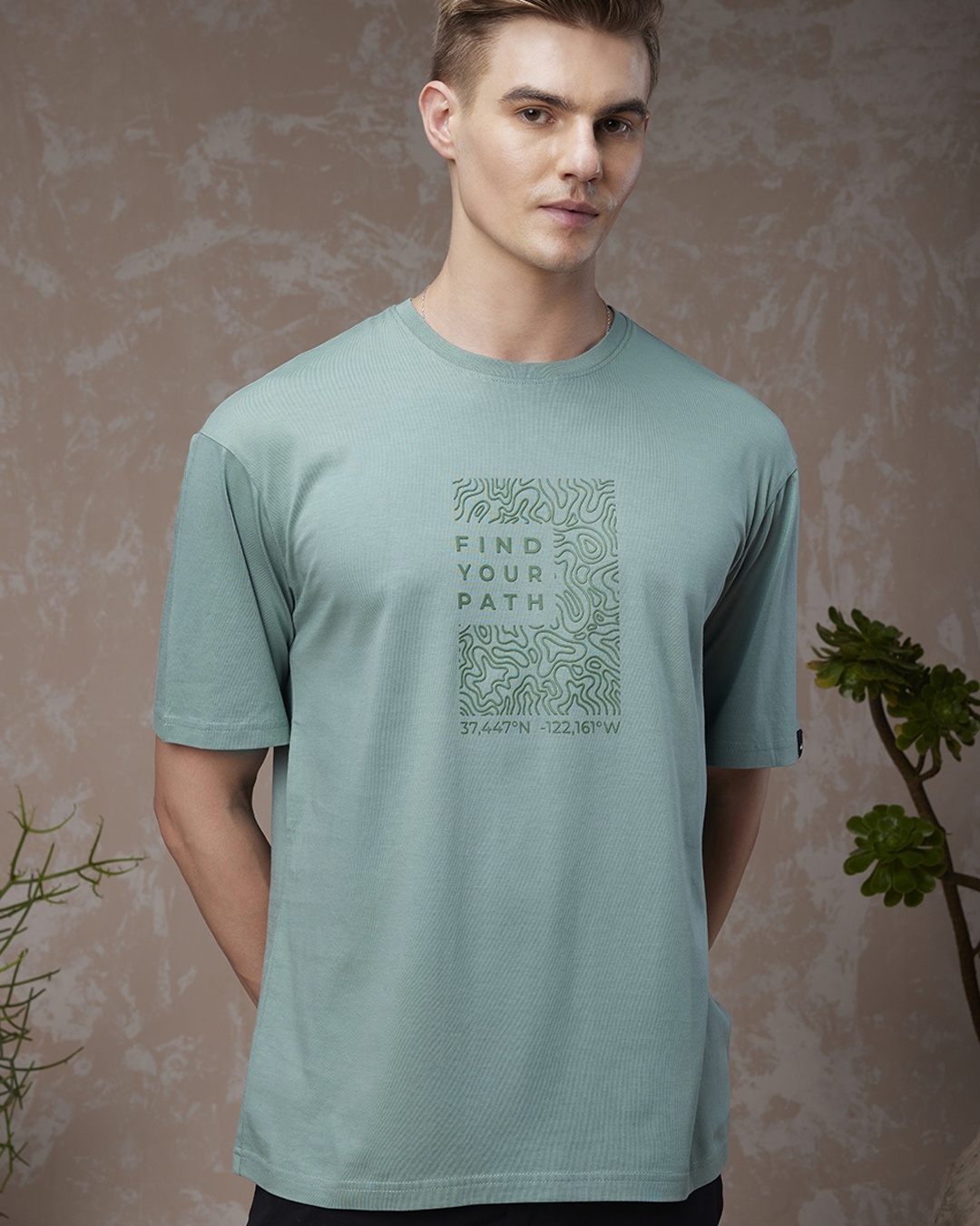 Men's Green Find Your Path Graphic Printed Oversized T-shirt