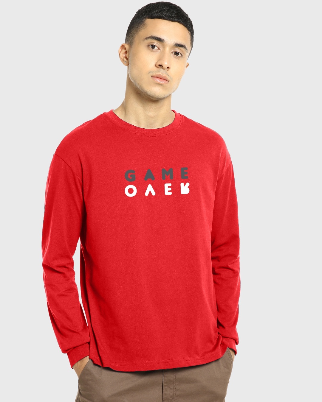 Men's Red Game Over Minimal Typography Oversized T-shirt