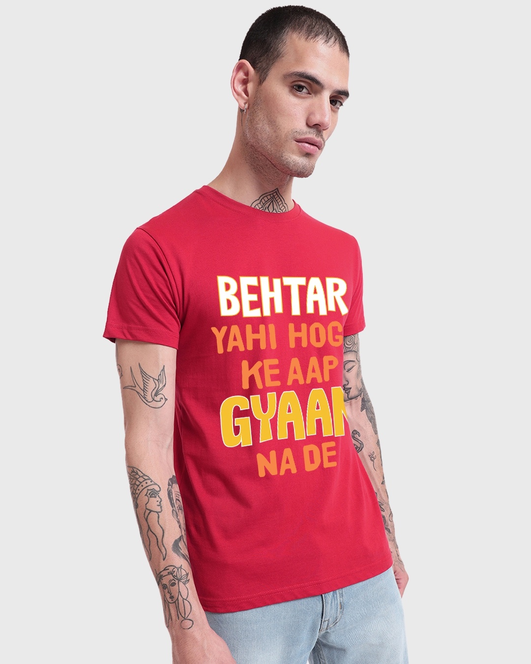 Men's Red Gyaan Typography T-shirt