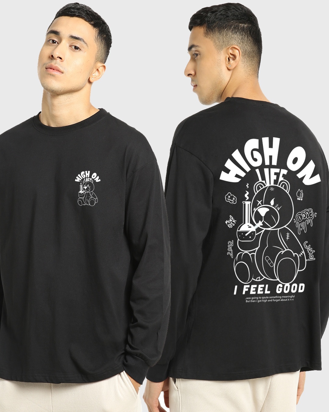 Men's Black High On Life Graphic Printed Oversized T-shirt