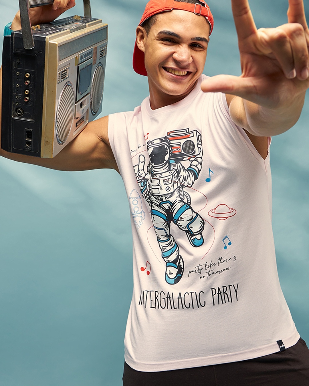 Men's Pink Intergalactic Party Graphic Printed Boxy Fit Vest
