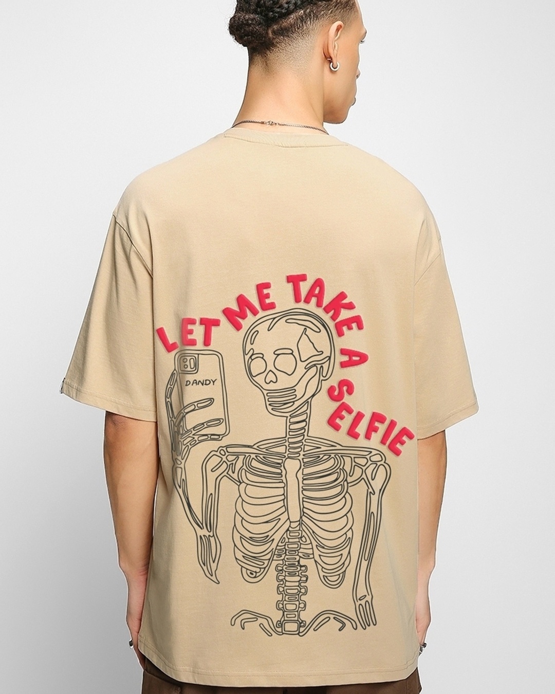 Men's Brown Let Me Take A Selfie Graphic Printed Oversized T-shirt