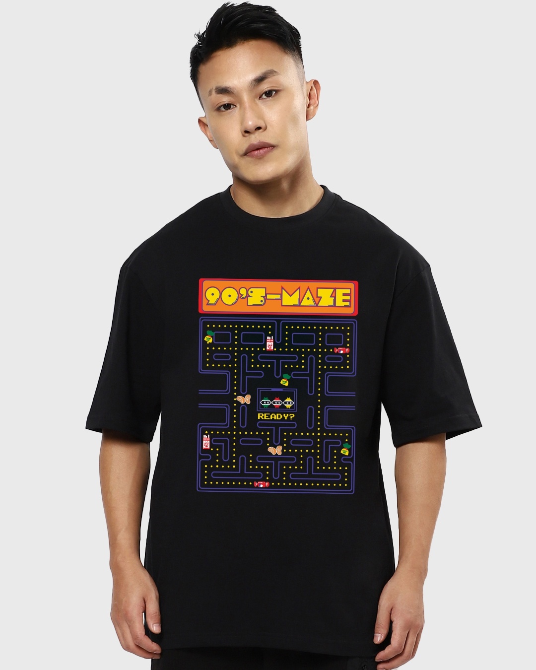 Men's Black 90'S Maze Memories Graphic Printed Oversized T-shirt