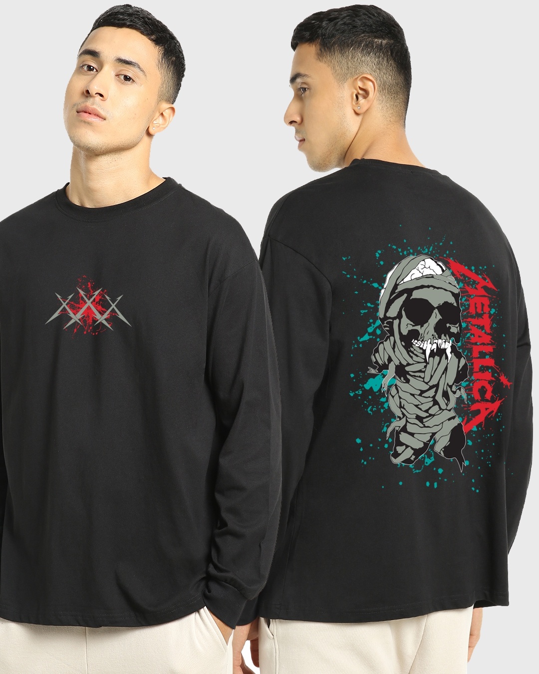 Men's Black Metallica Graphic Printed Oversized T-shirt