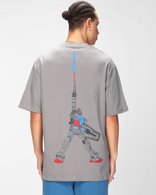 Men's Grey Gundam Mobile Suit Graphic Printed Oversized T-shirt
