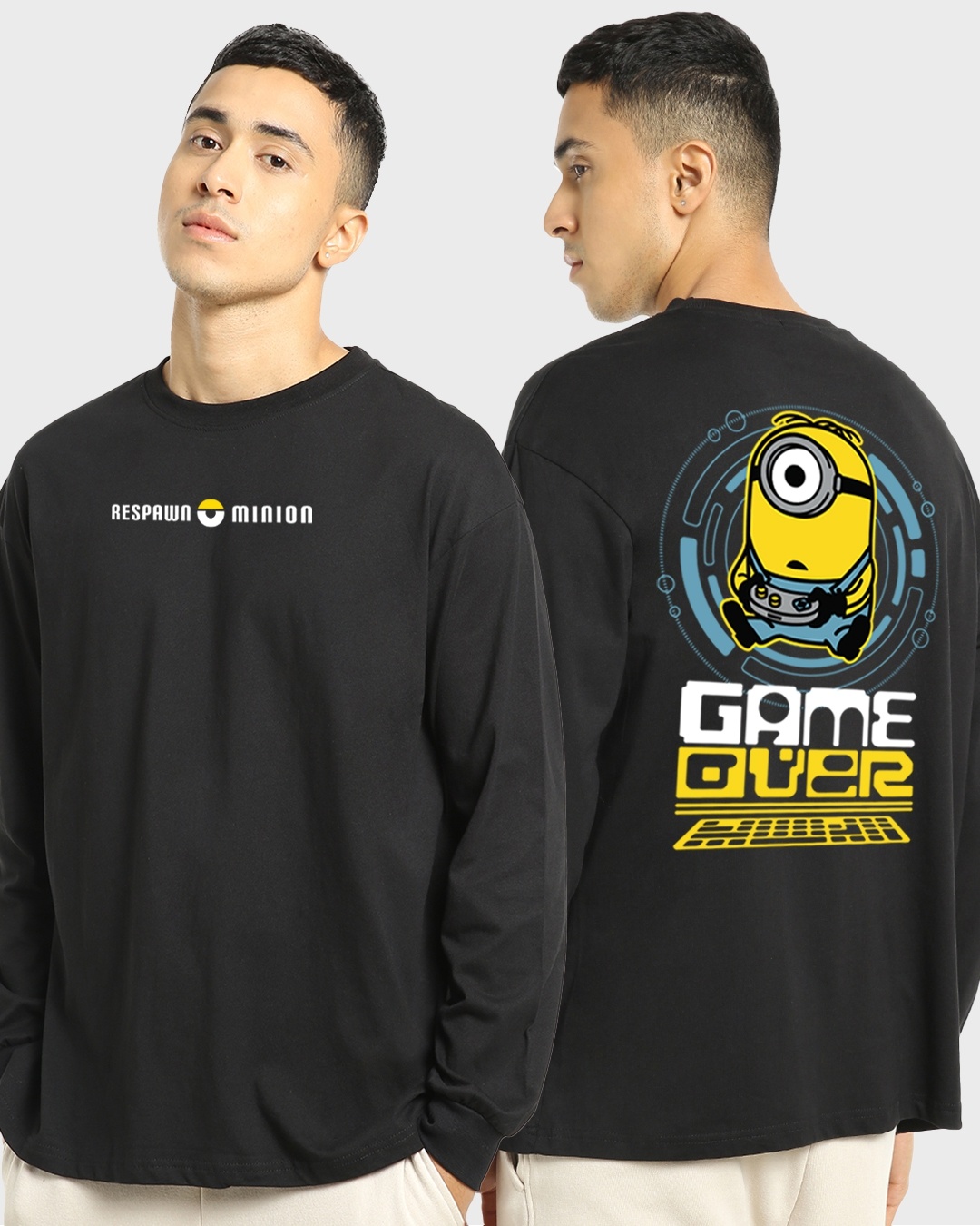 Men's Black Minions Game Over Graphic Printed Oversized T-shirt