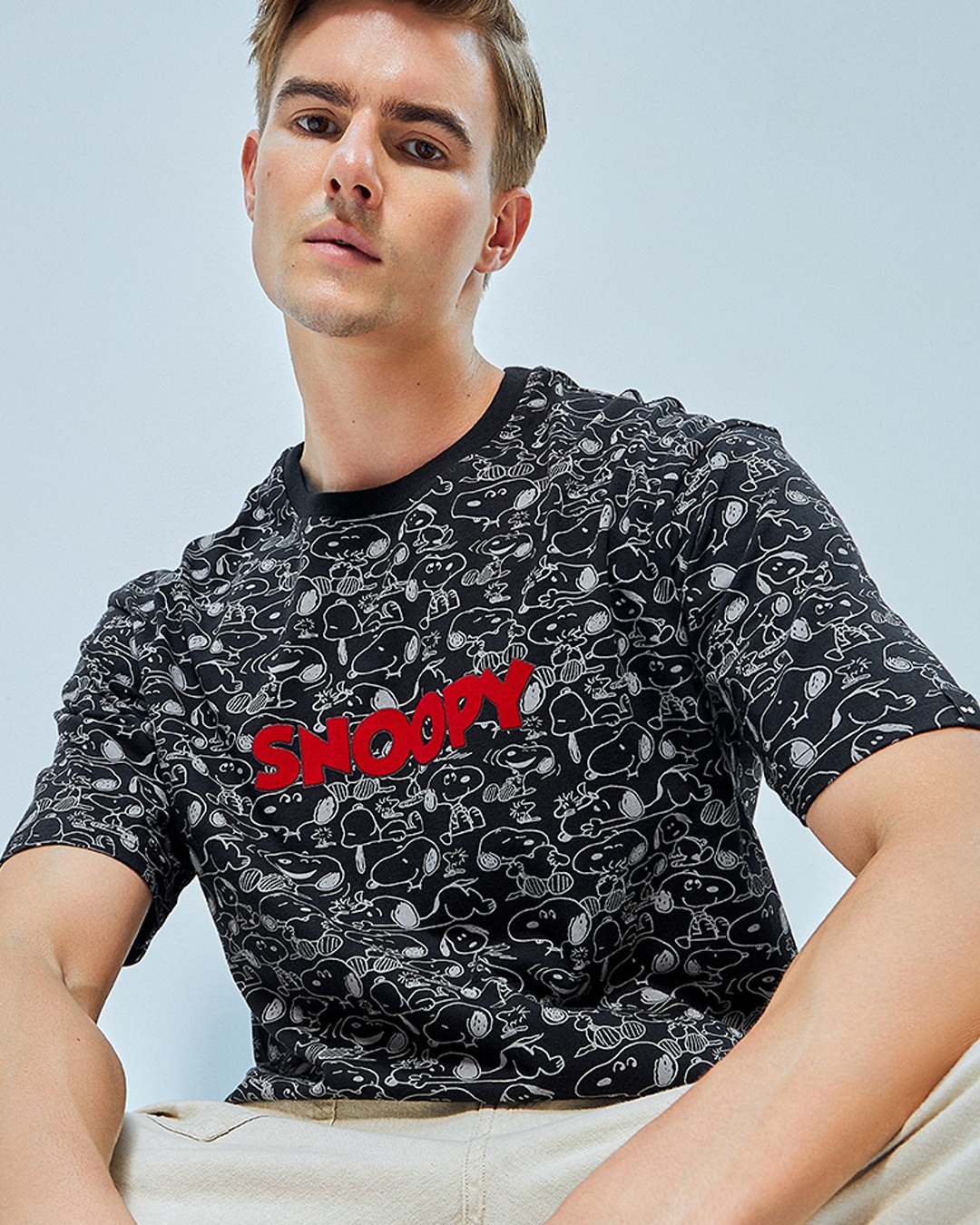 Men's Black Snoopy All Over Printed Oversized T-shirt