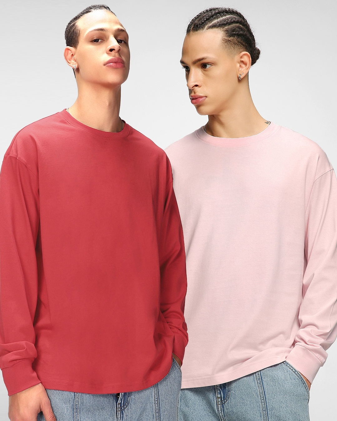 Pack of 2 Men's Red & Pink Oversized T-shirt