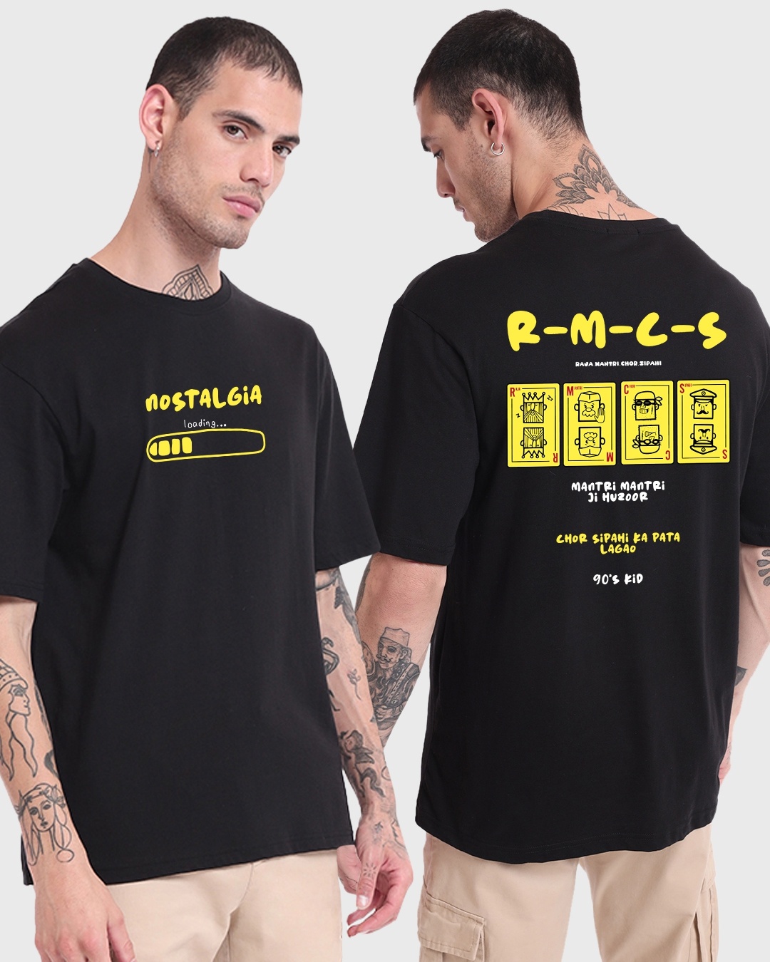 Men's Black Raja-Mantri-Chor-Sipahi Graphic Printed Oversized T-shirt
