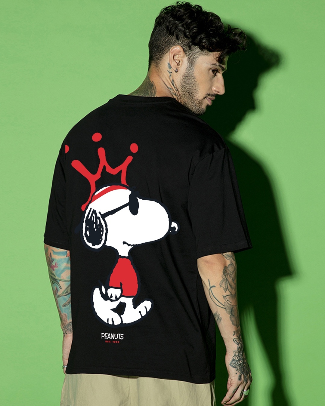 Men's Black Snoopy King Graphic Printed Oversized T-shirt