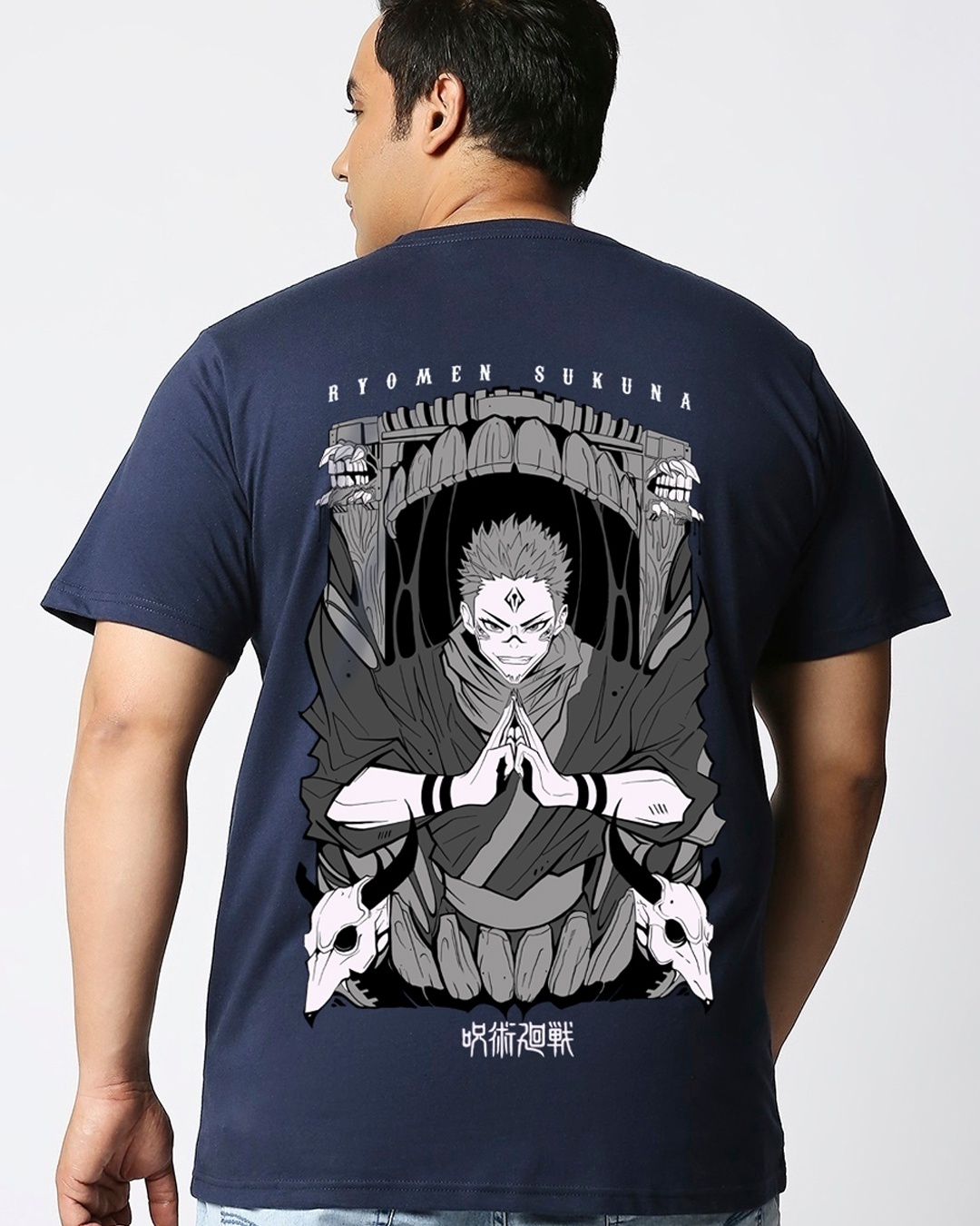 Men's Navy Blue Sukuna X Graphic Printed Oversized Plus Size T-shirt