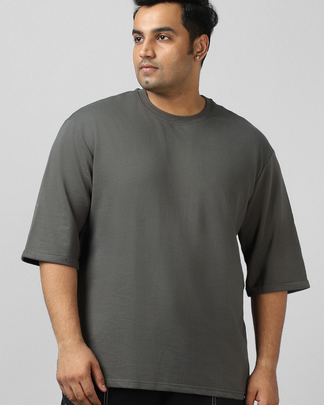 Men's Grey Super Loose Fit Plus Size T-shirt