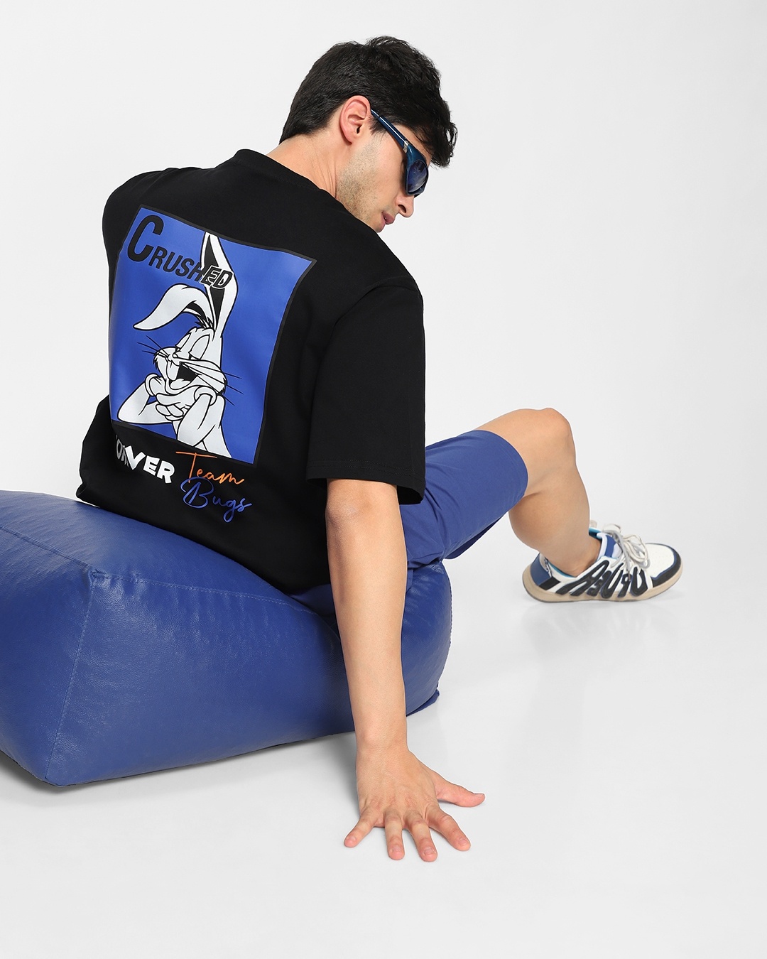 Men's Black Team Bugs Graphic Printed Oversized T-shirt
