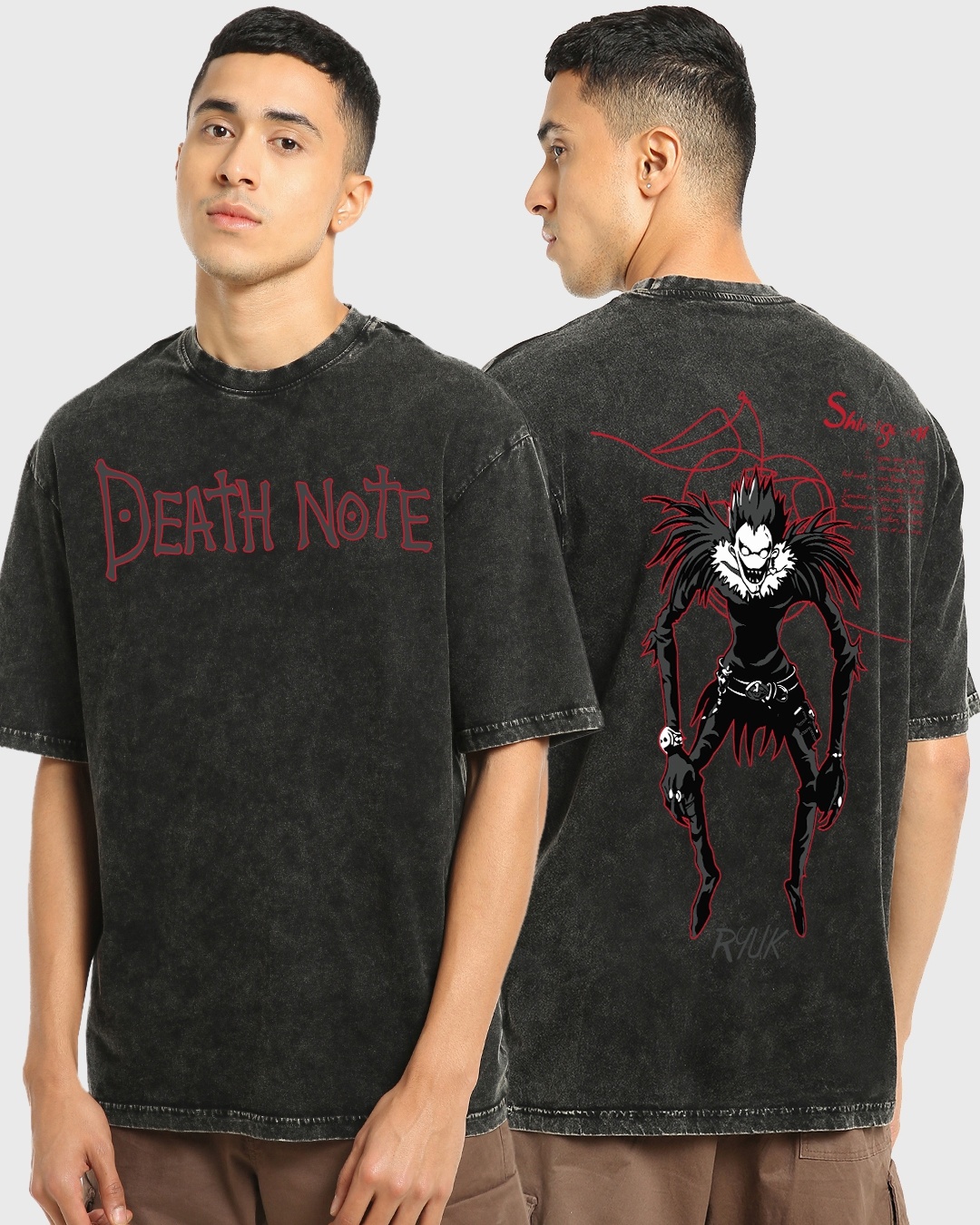 Men's Black The Ryuk Graphic Printed Oversized Acid Wash T-shirt