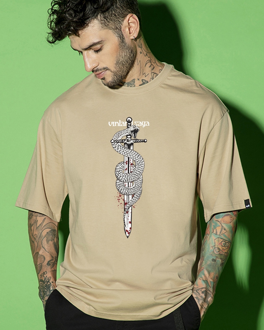Men's Brown Thorfinn Graphic Printed Oversized T-shirt