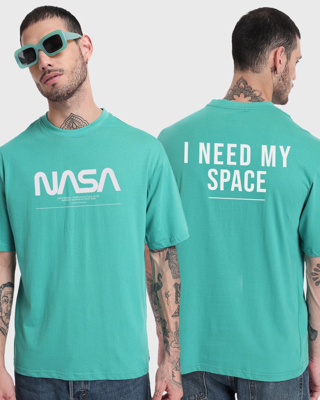 Men's Tropical Blue Spaced NASA Typography Oversized T-shirt