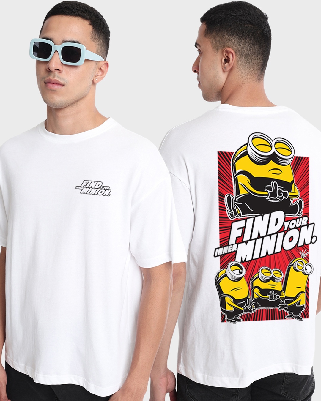 Men's White Find Your Minion Graphic Printed Oversized T-shirt