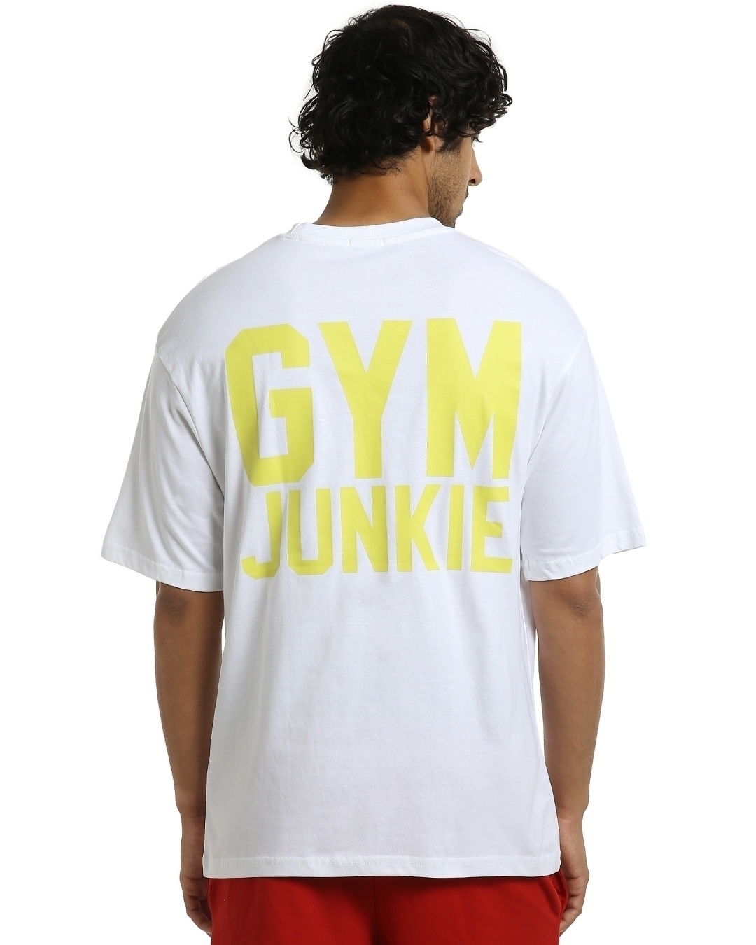 Men's White Gym Junkie Typography Oversized T-shirt