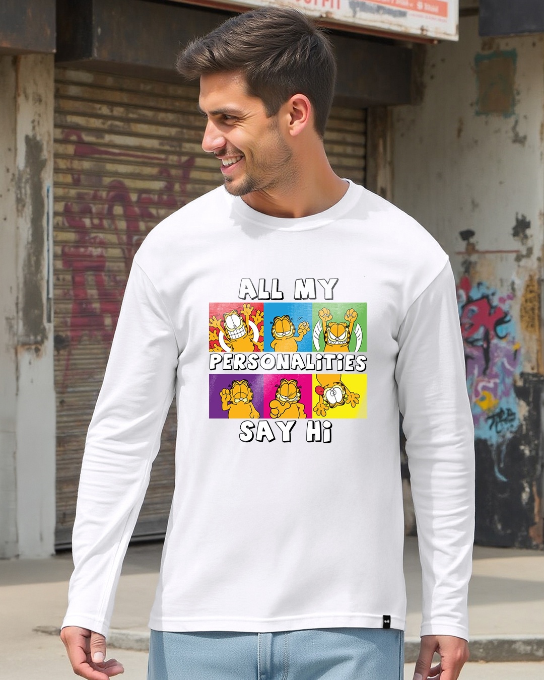 Men's White Personality Graphic Printed T-shirt