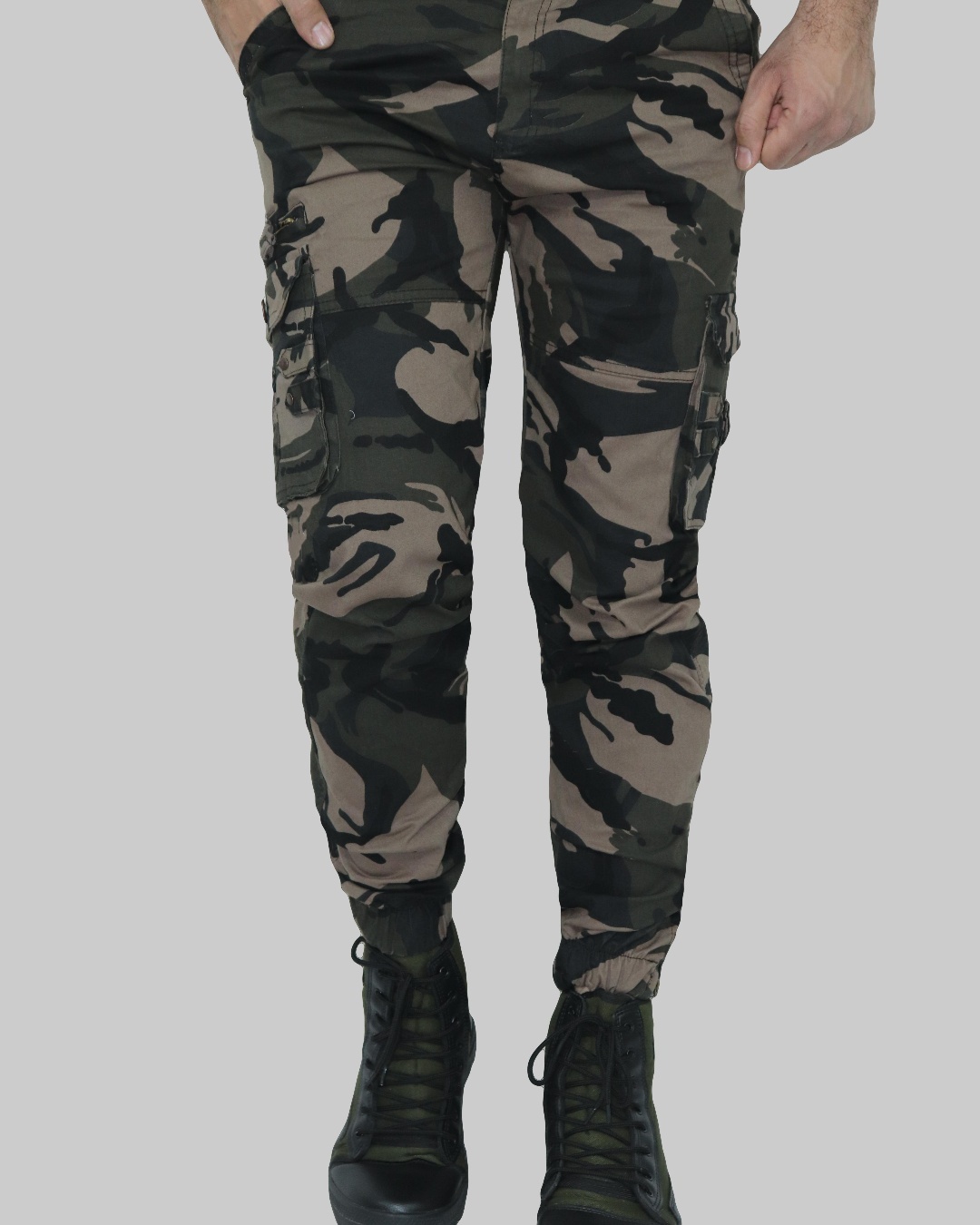 Men's Beige Camouflage Printed Cargo Pants