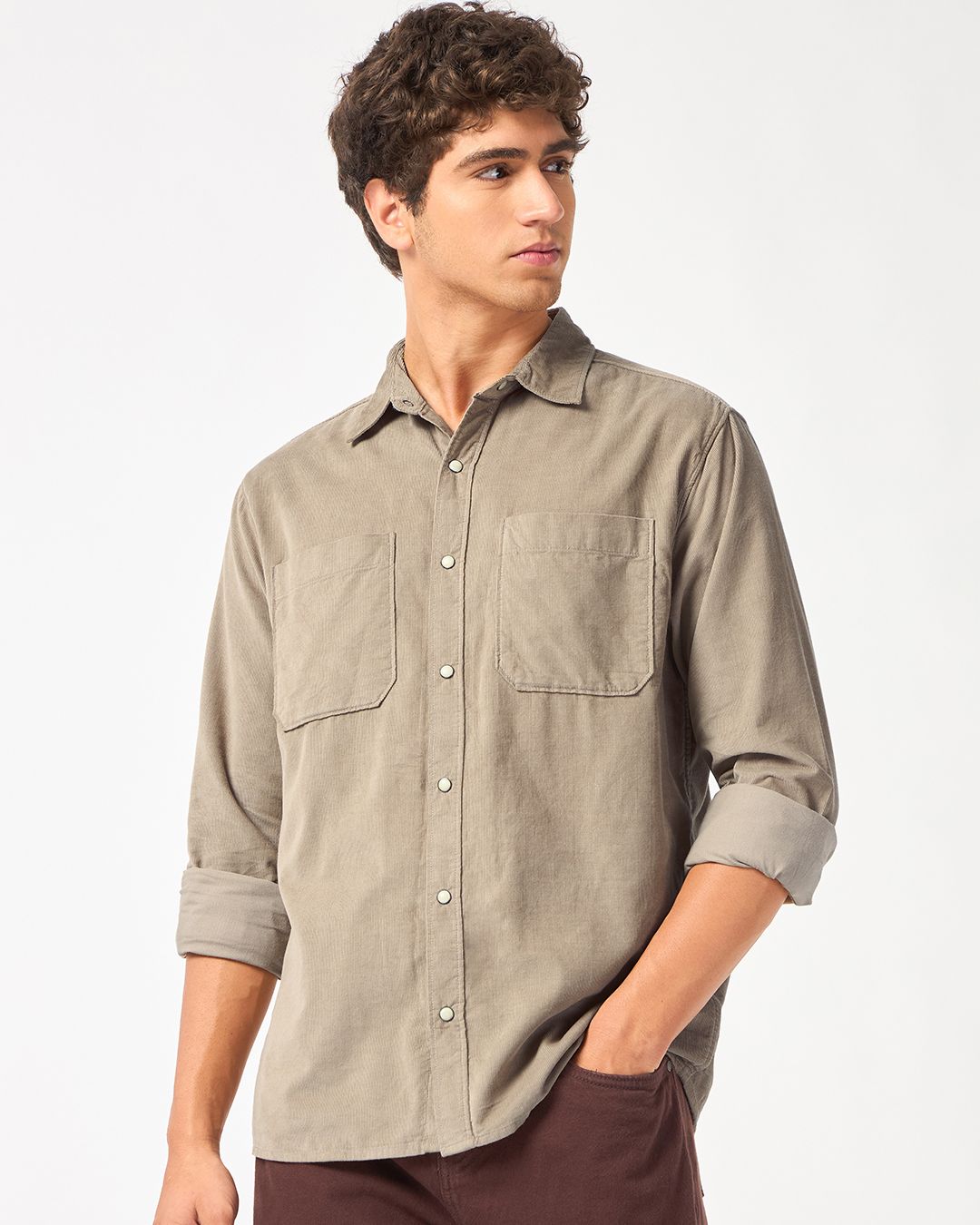 Men's Beige Corduroy Shirt