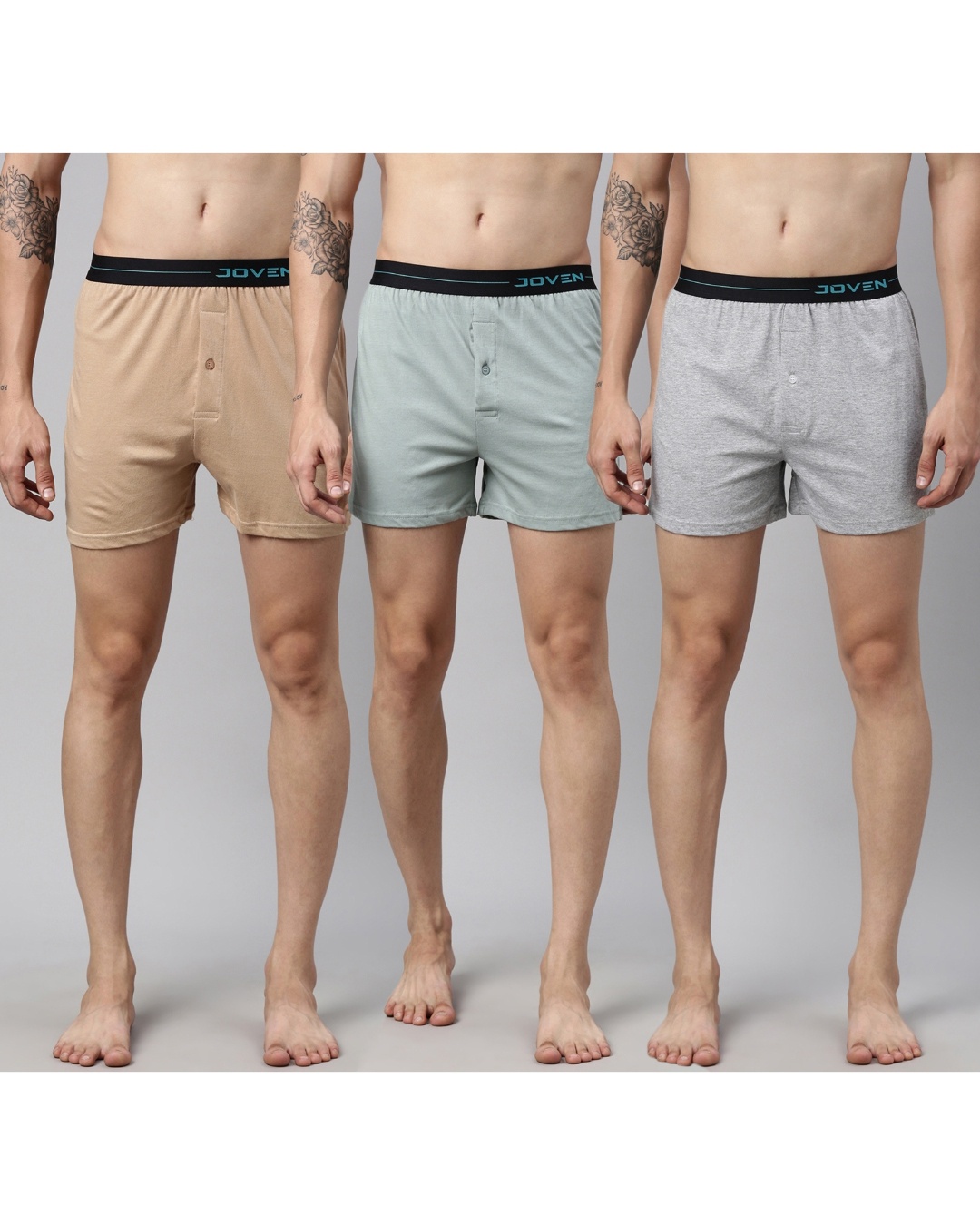 Pack of 3 Men's Beige & Grey Boxers