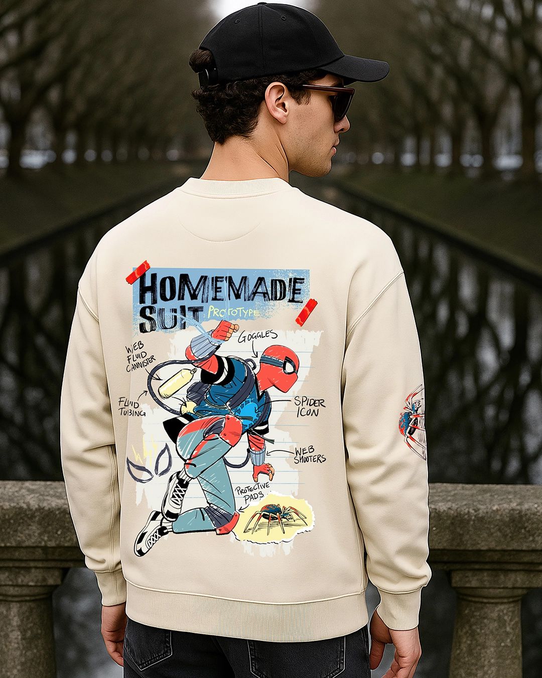 Men's Beige Home Made Graphic Printed Oversized Sweatshirt