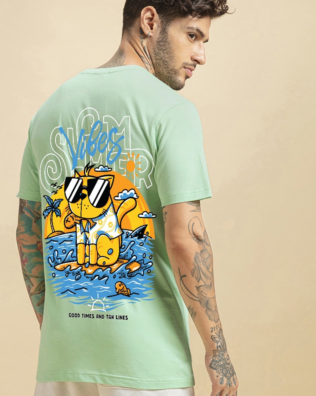 Men's Bird Egg Green Heat Waves Graphic Printed T-shirt