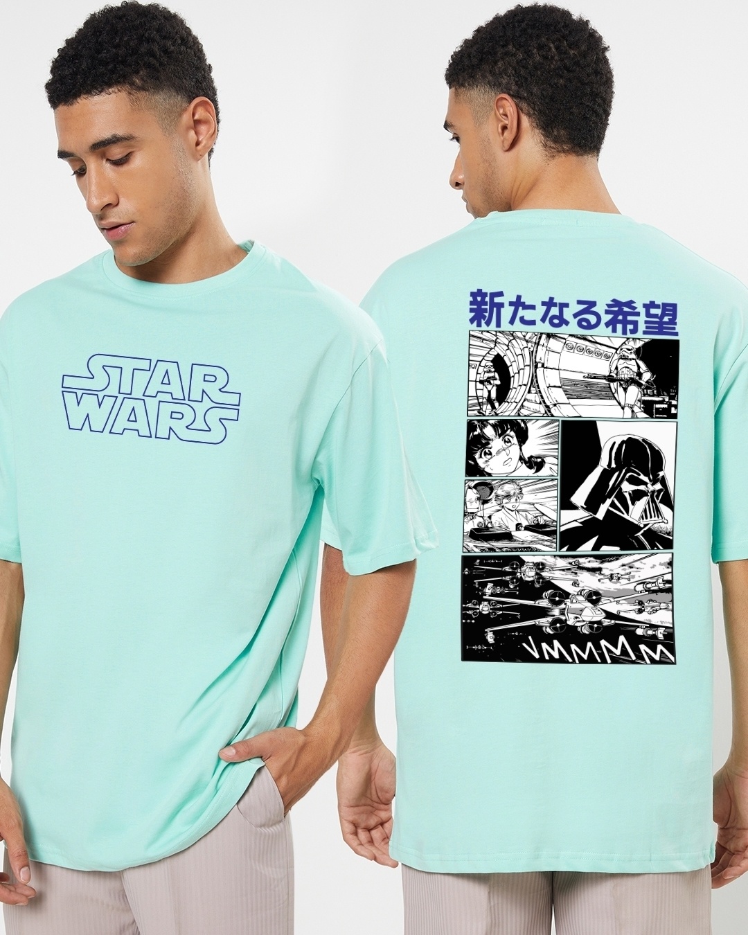 Men's Green Manga War Graphic Printed Oversized T-shirt