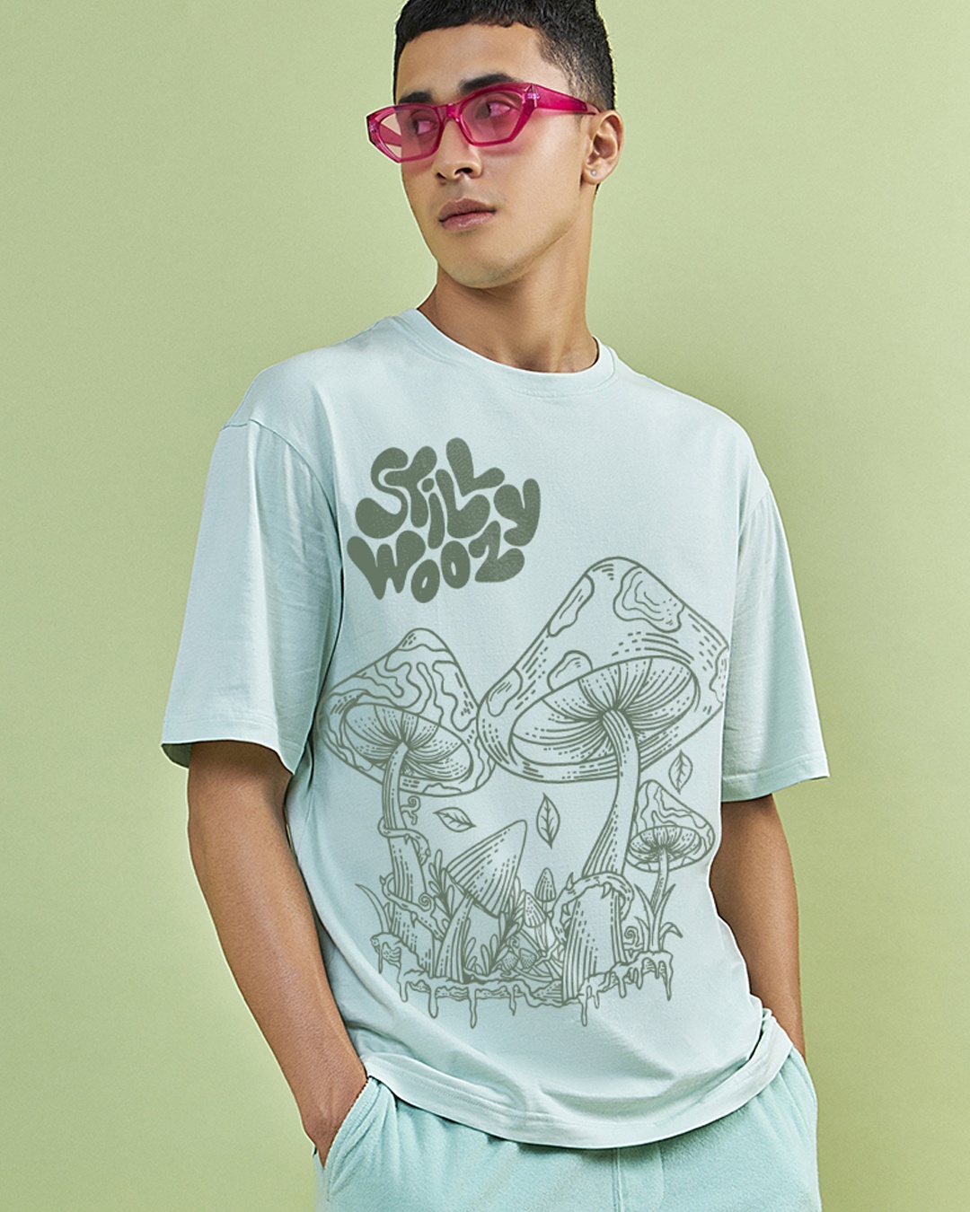 Men's Bird Egg Green Woozy Graphic Printed Oversized T-shirt