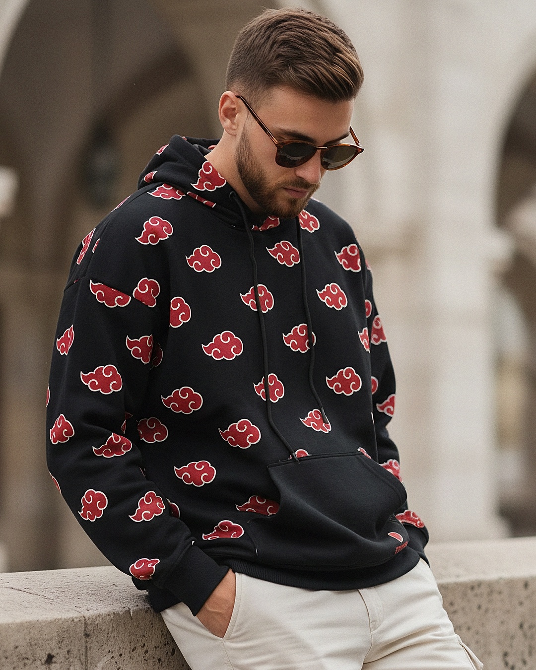 Men's Black All Over Printed Oversized Hoodies