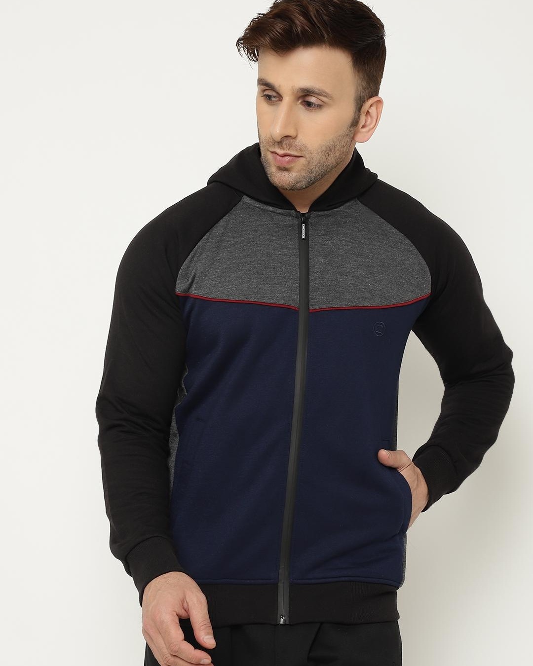 Men's Black & Blue Color Block Hooded Jacket