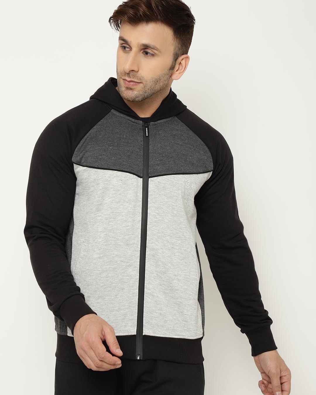 Men's Black & White Color Block Hooded Jacket