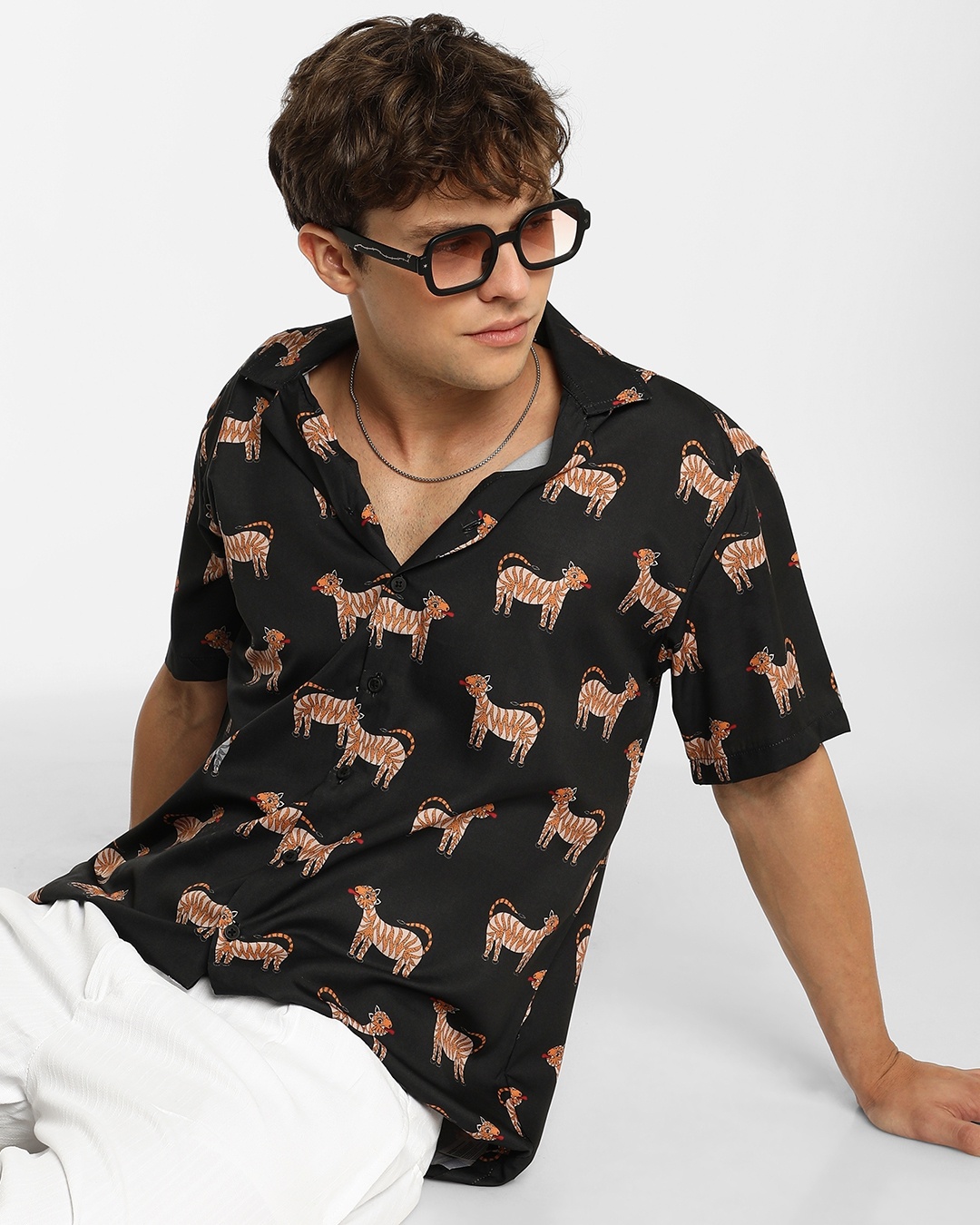 Men's Black Animal Printed Shirt