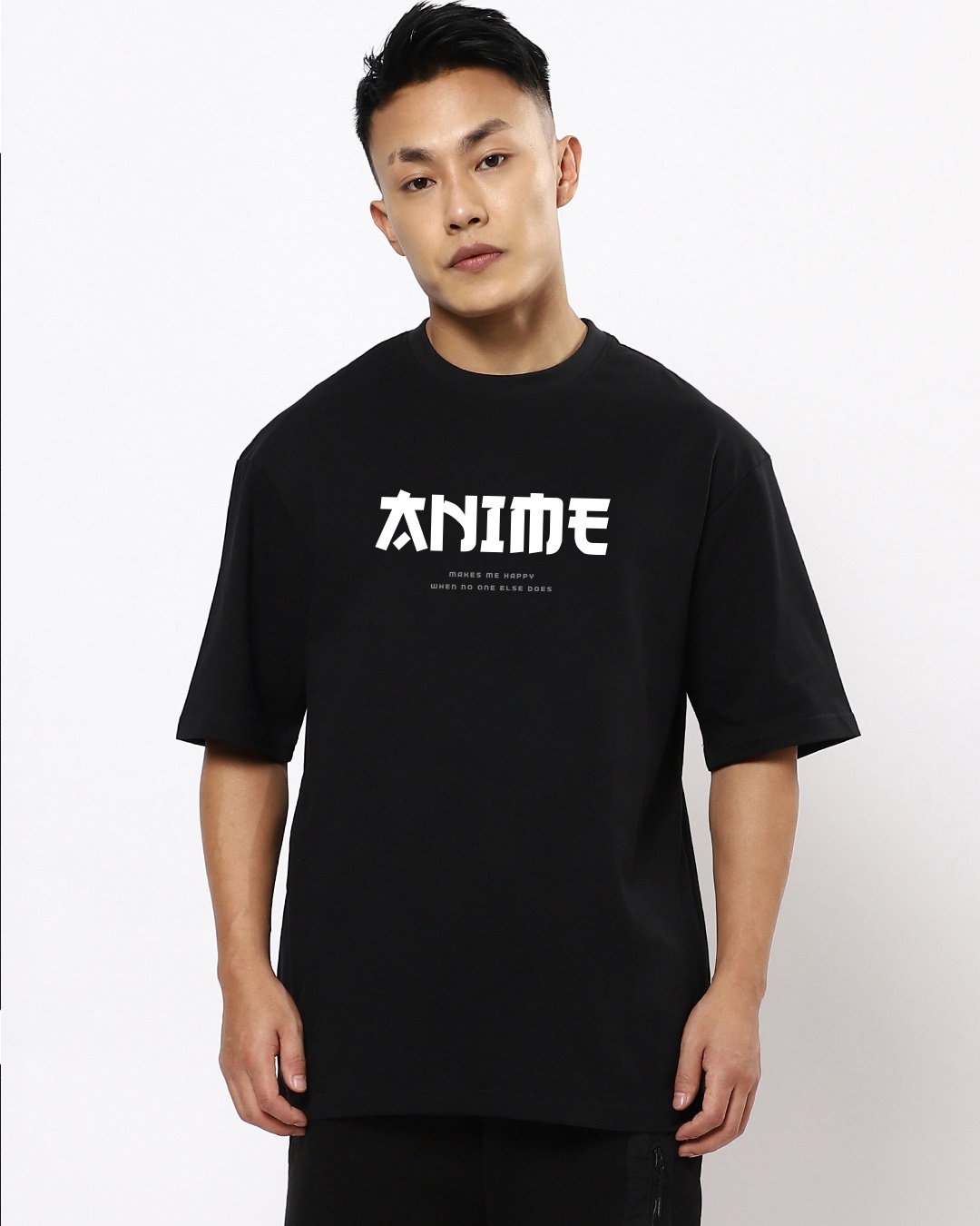 Men's Black Anime Makes Me Typographic Oversized Fit T-shirt