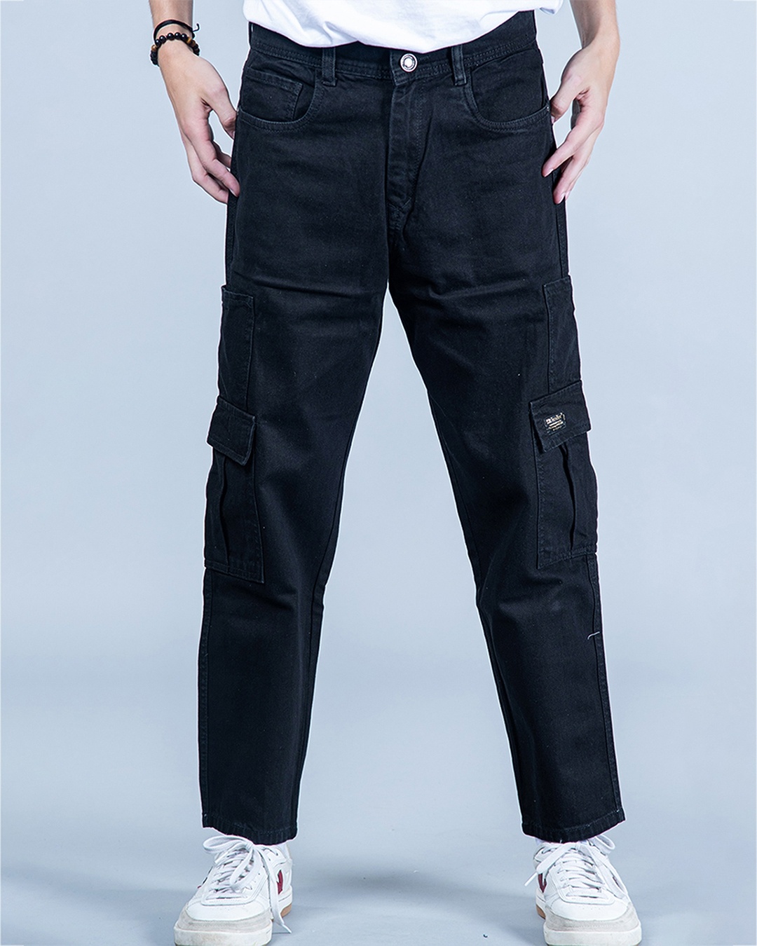 Men's Black Baggy Fit Cargo Jeans