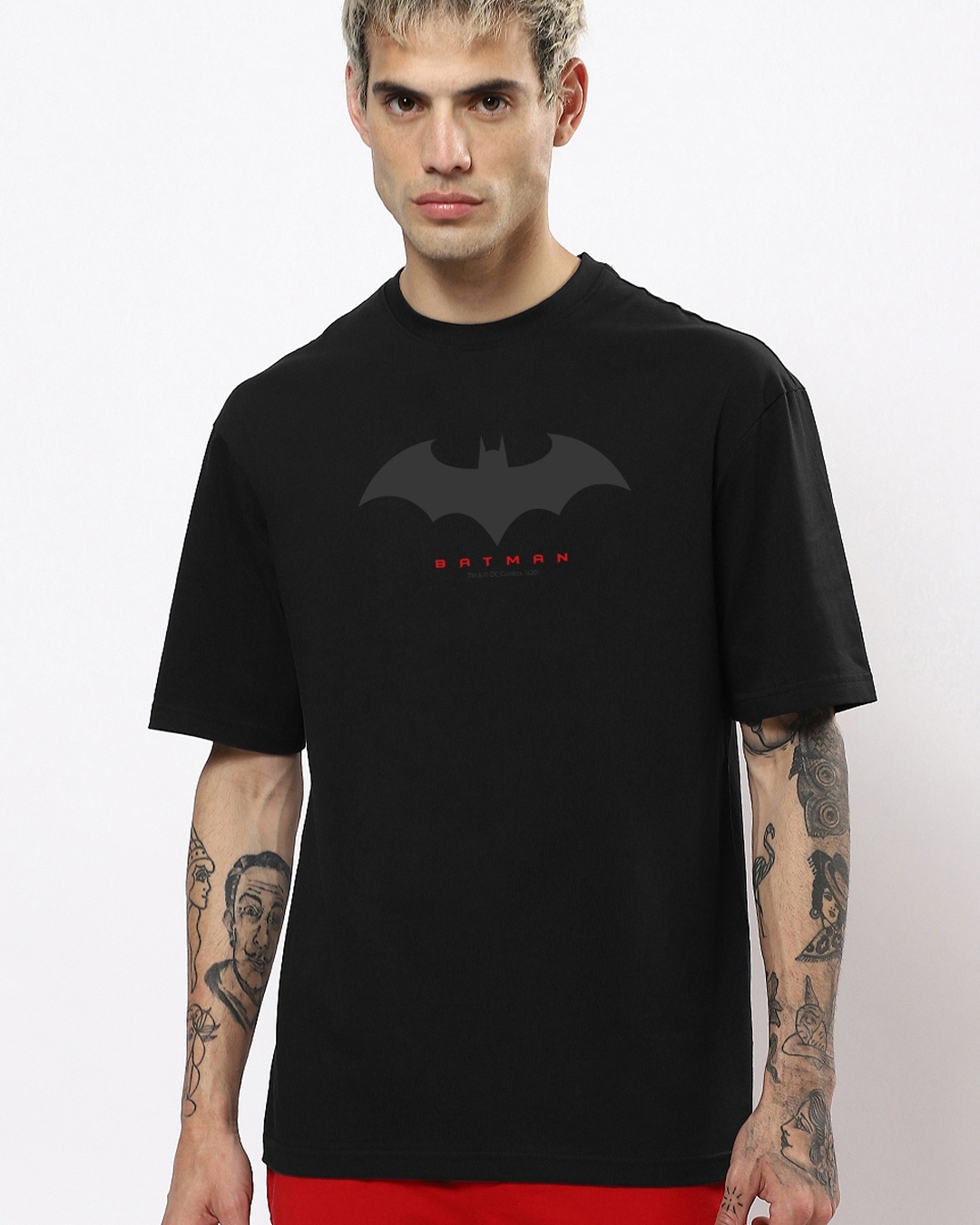 Men's Black Batman Graphic Printed Oversized T-shirt