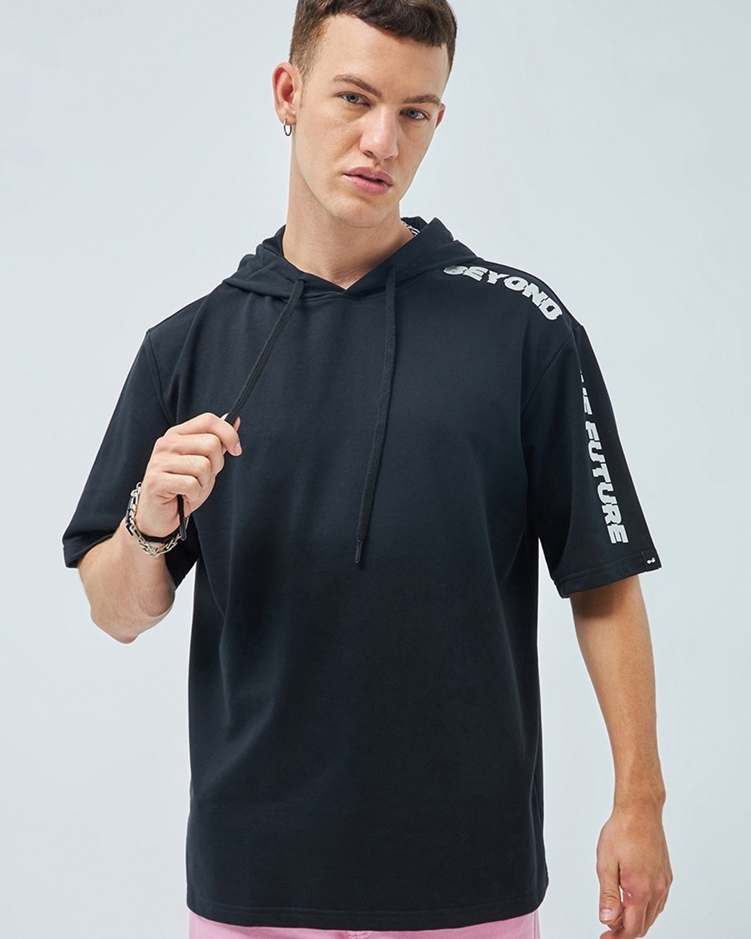 Men's Black Beyond the Future Typography Oversized Hoodie T-shirt