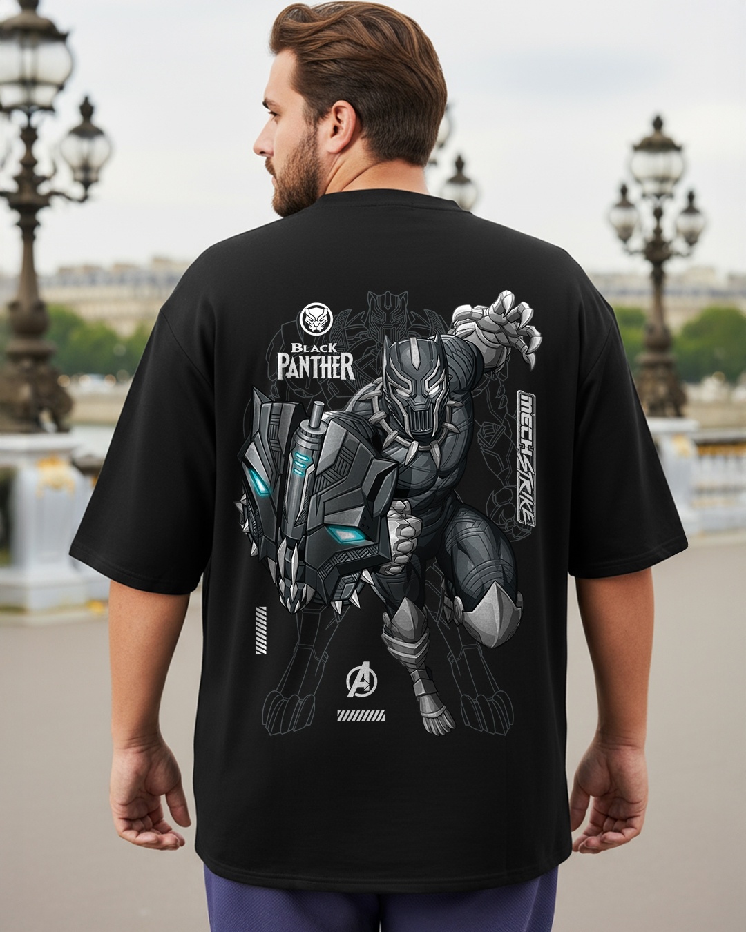 Men's Black Panther Graphic Printed Oversized Plus Size T-shirt