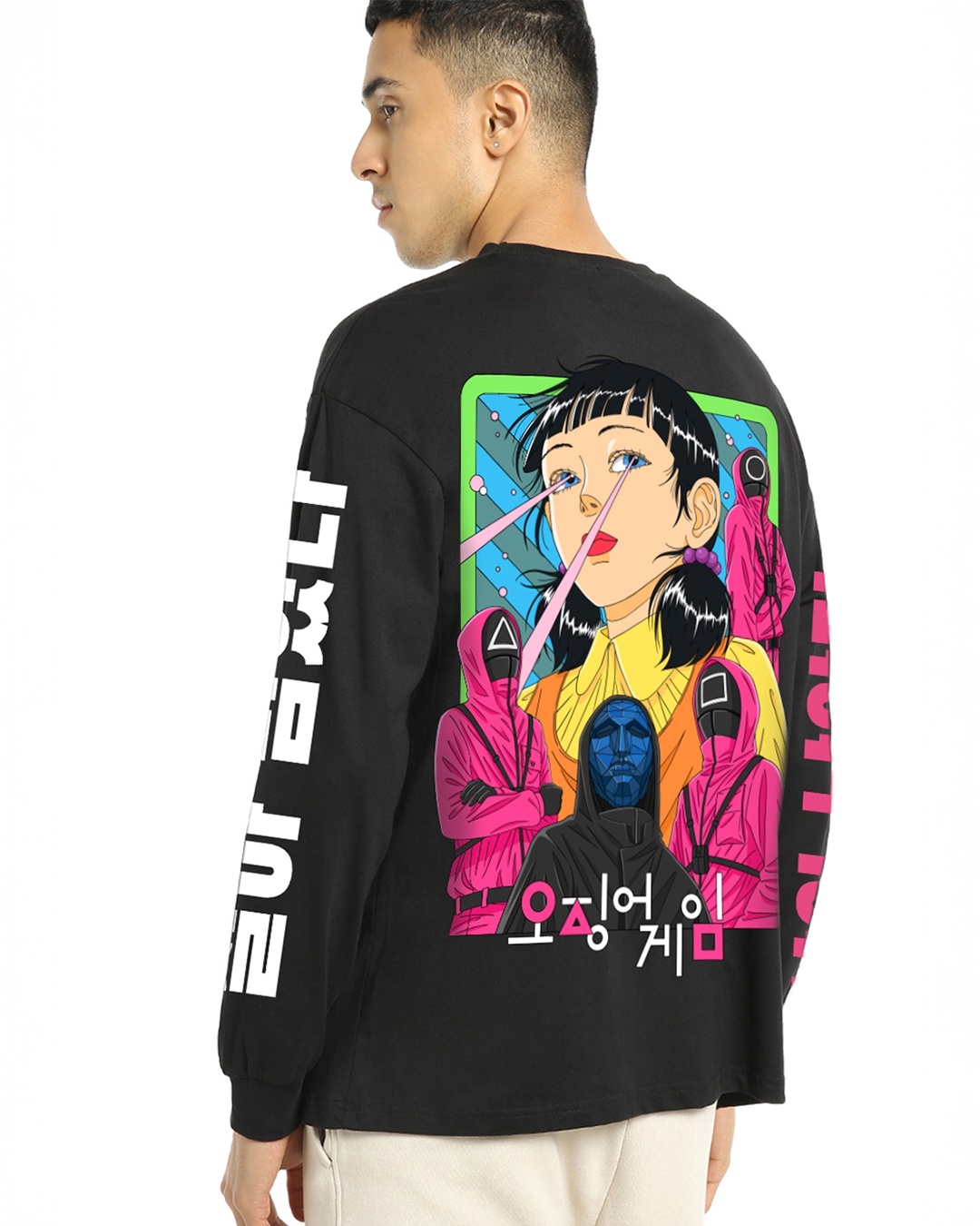 Men's Black Bloodshed Graphic Printed Oversized T-shirt