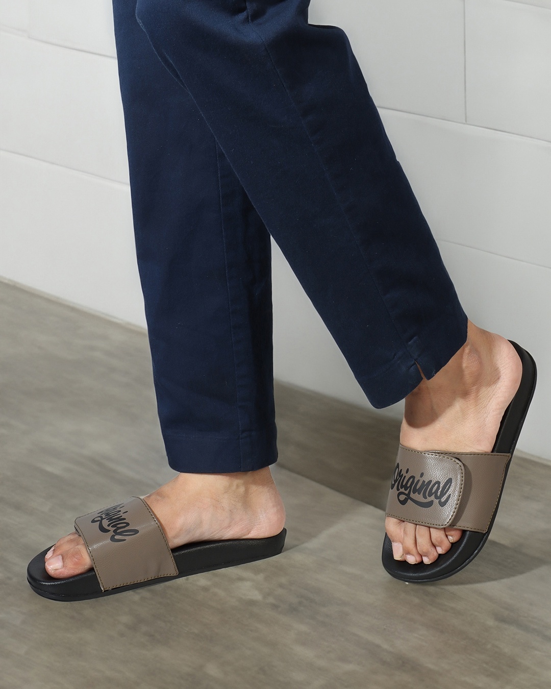 Men's Black & Brown Typography Velcro Sliders
