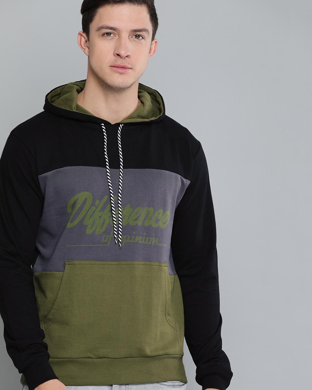 Men's Black Color Block Hoodie