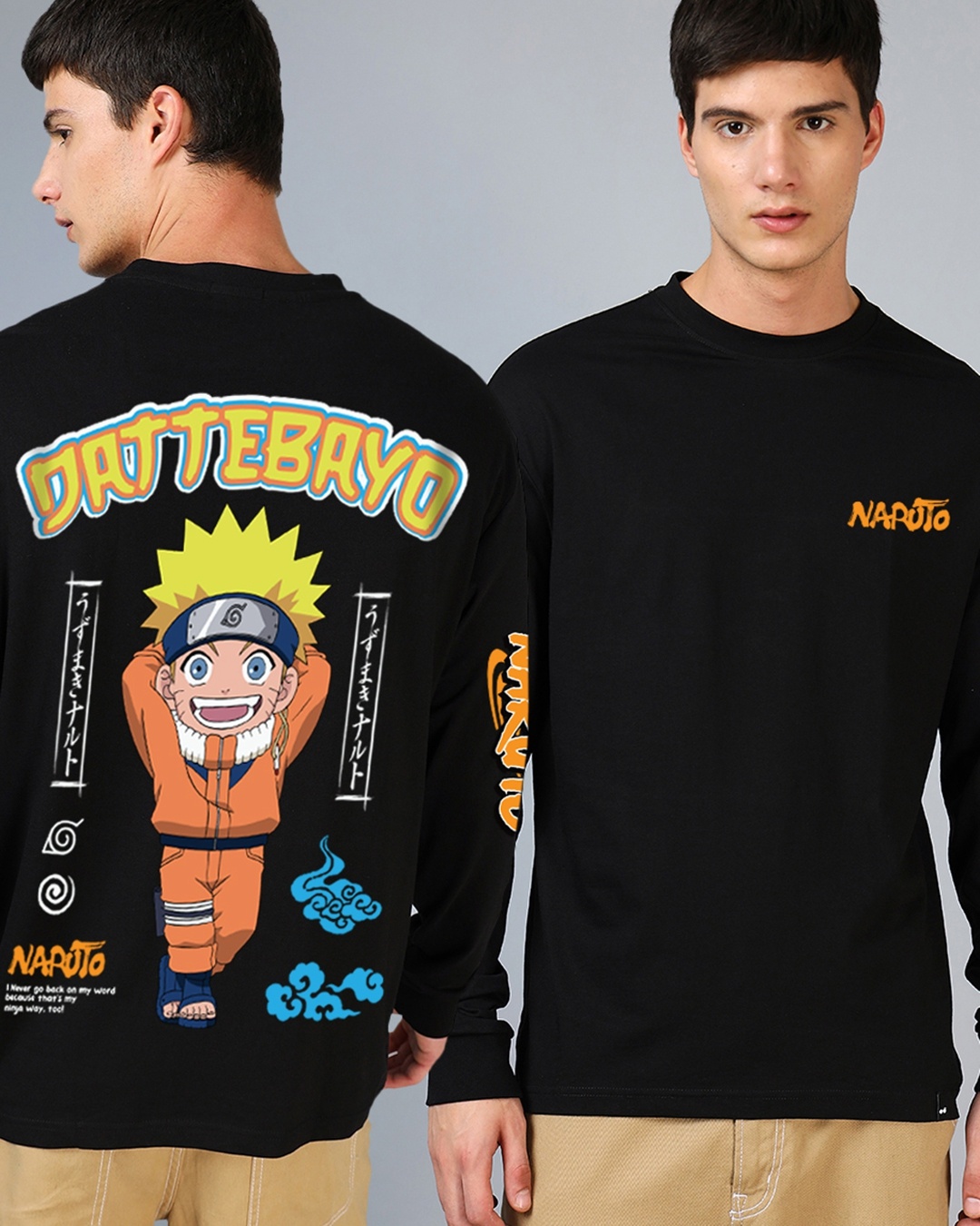 Men's Black Dattebayo Graphic Printed Oversized T-shirt