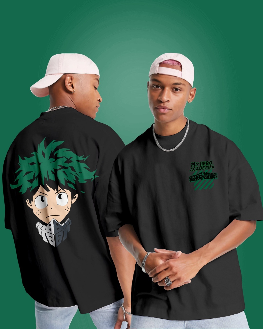 Men's Black Deku Graphic Printed Oversized T-shirt