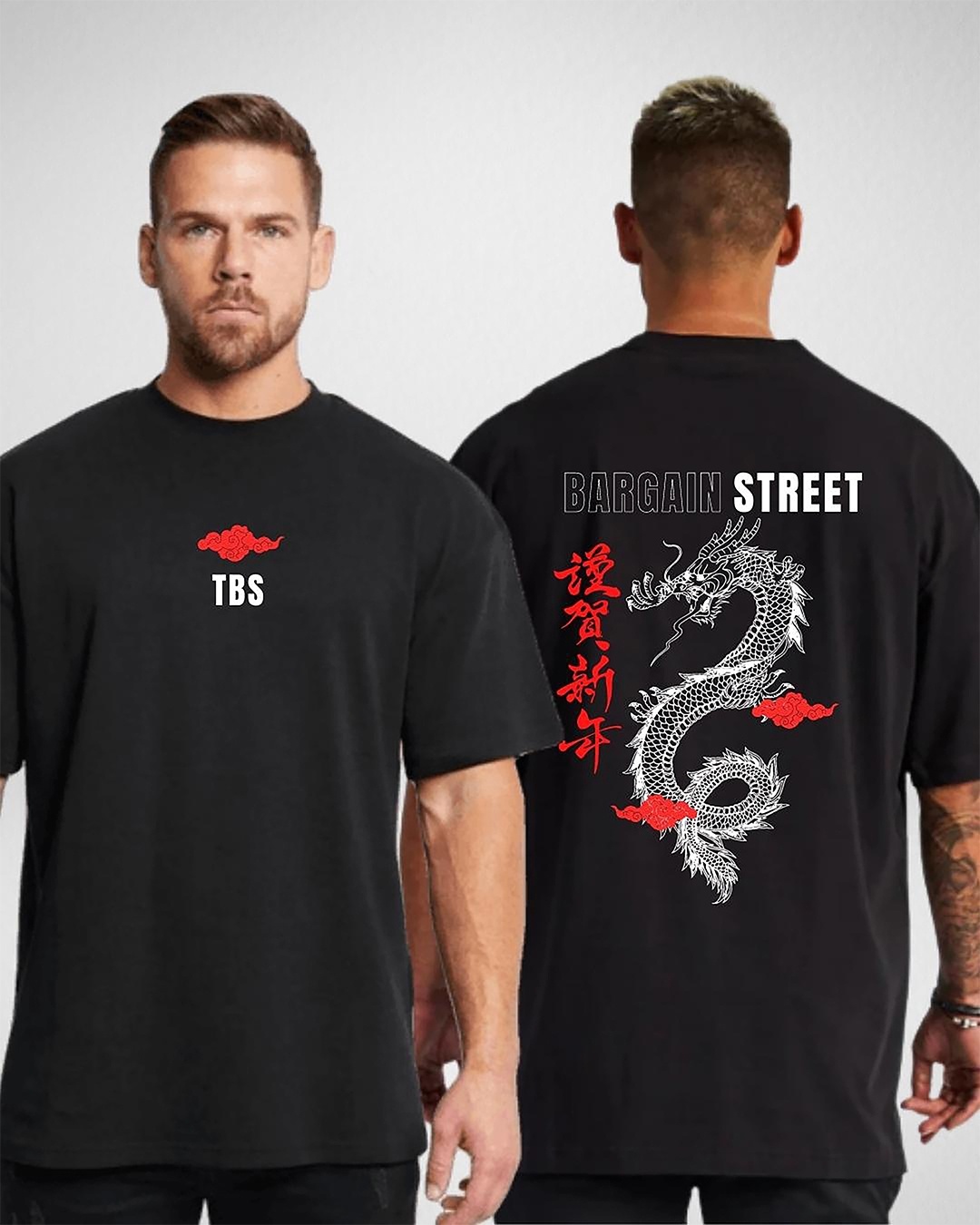 Men's Black Dragon Graphic Printed Oversized T-shirt